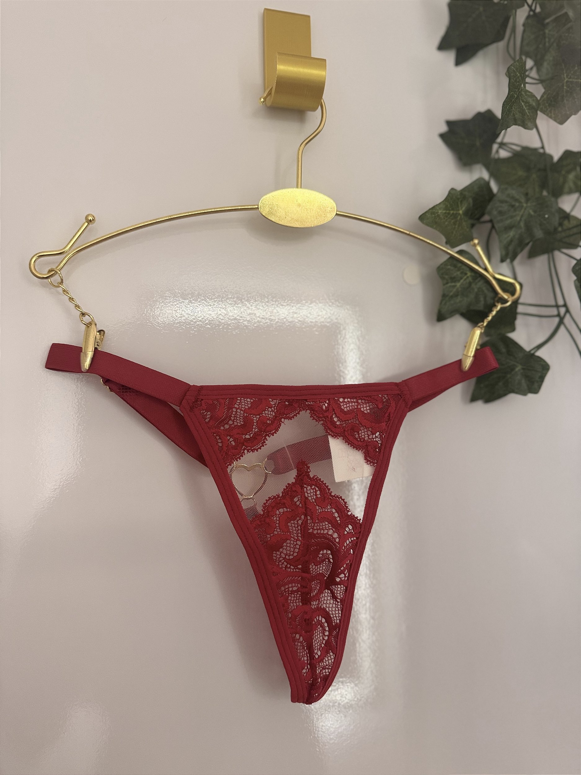 Calcinha fio dental com jóia atrás e ajuste nas laterais.