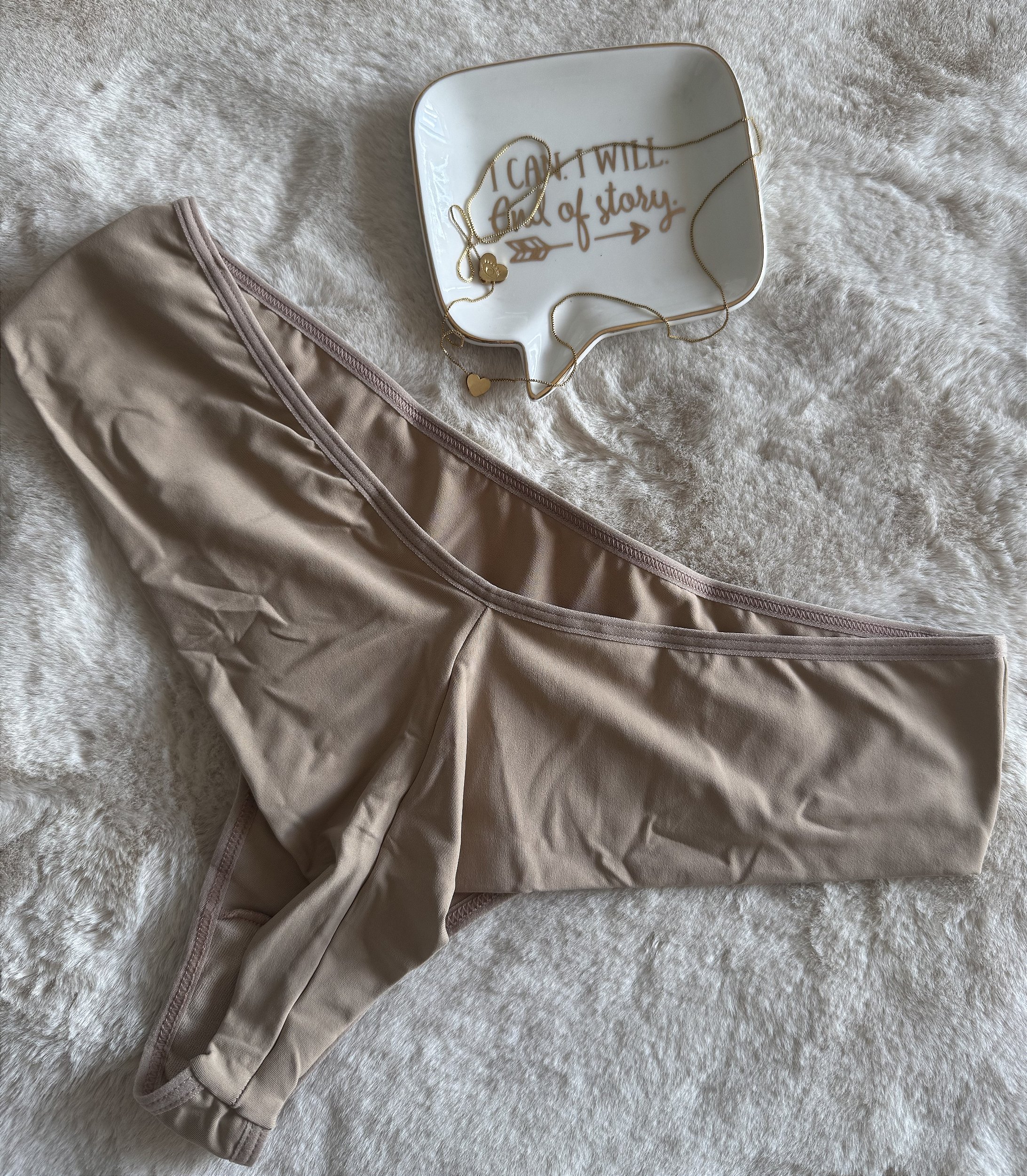 Calcinha fio dental duplo, cor chocolate (bége) - Tam GG